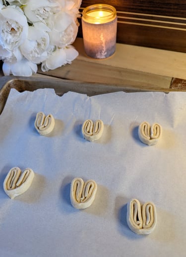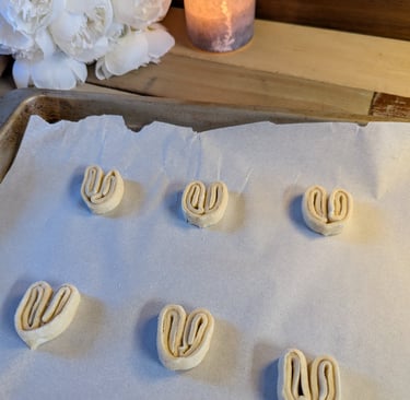 Palmiers are a favorite of mine, and my kids. They're delicious flakey, buttery hearts of French perfection. Just a little sprinkle of sugar makes them the right amount of sweetness to enjoy with a morning cup of coffee, an afternoon tea, or a little treat after the kids go to bed. I use store bought puff pastry to make things even easier. Because sometimes you need all the joy of something freshly baked, but not all the hassle.
